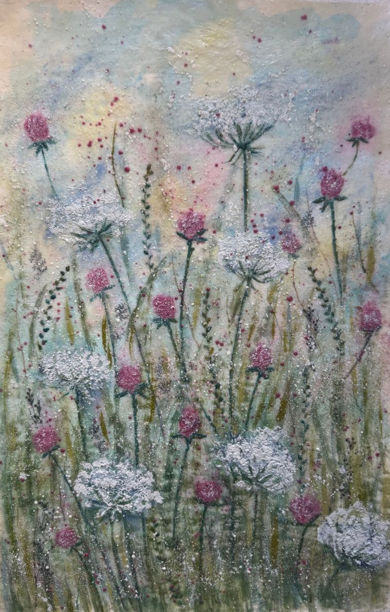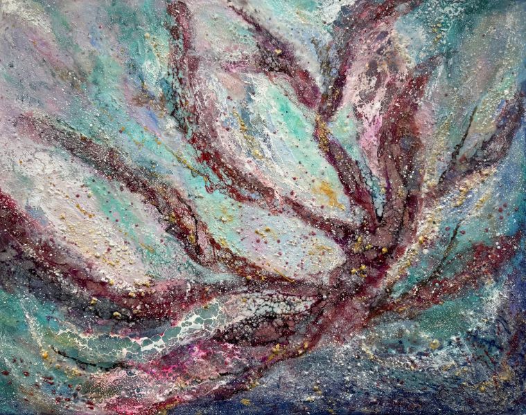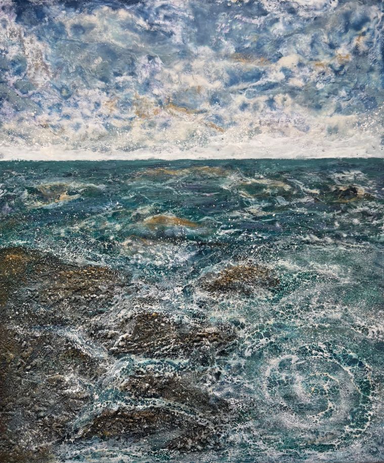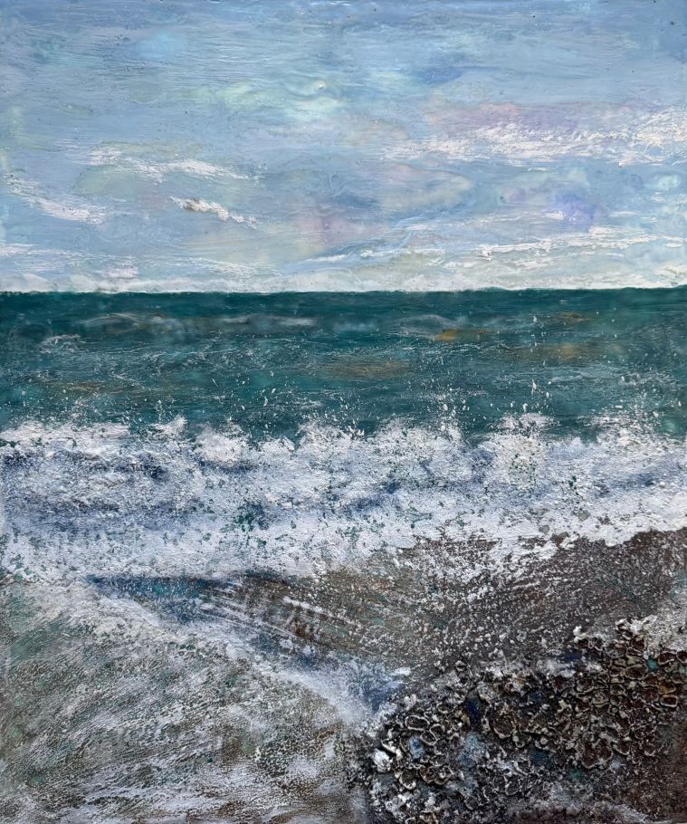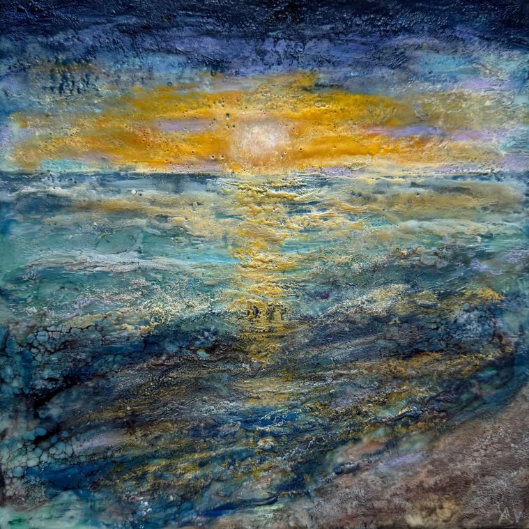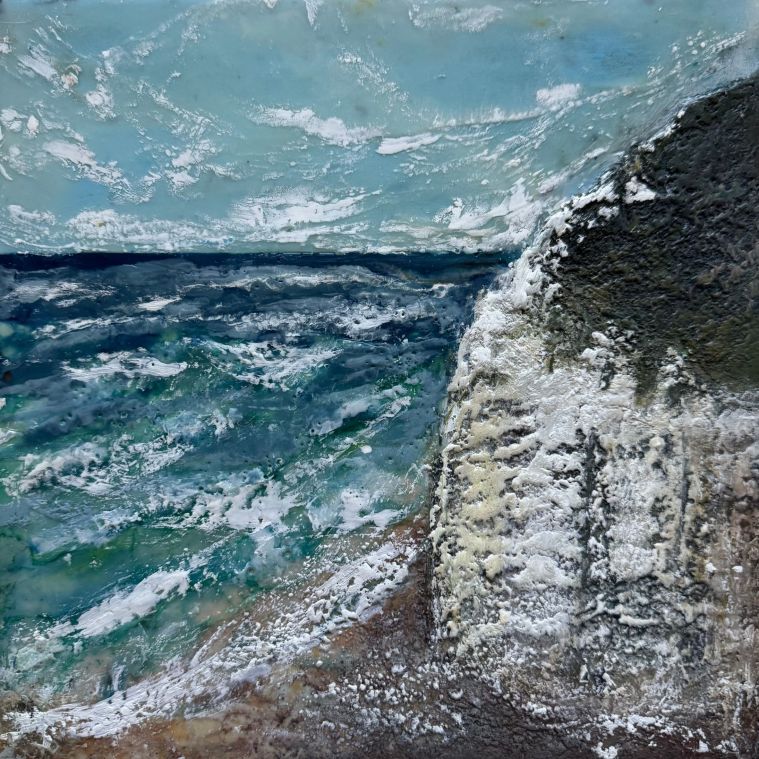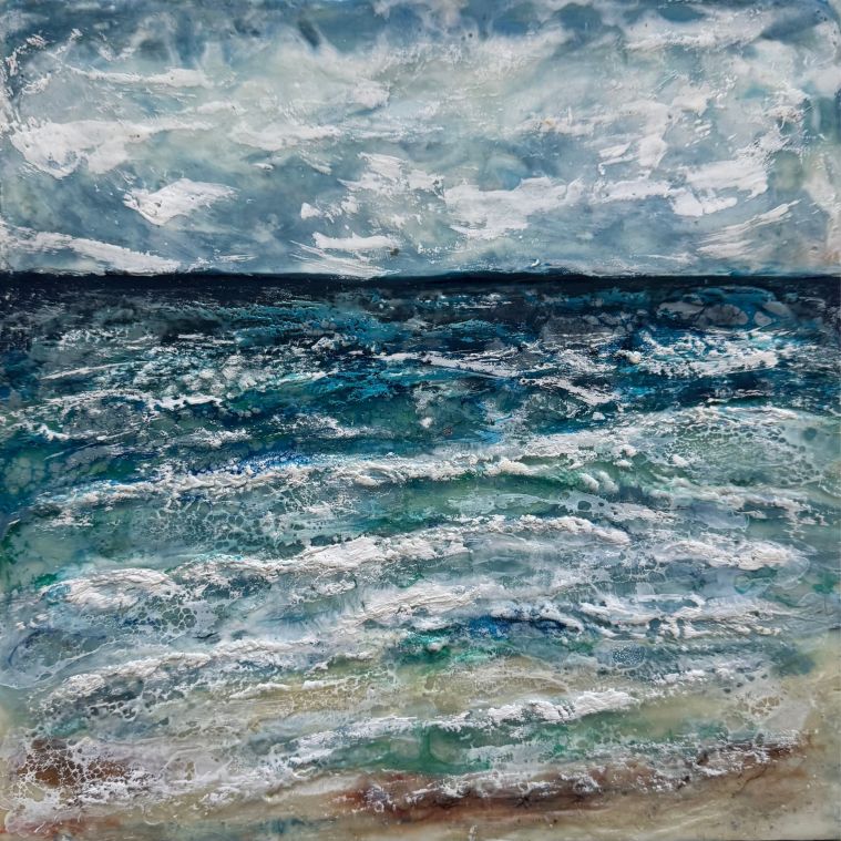 Featuring works on paper and encaustic paintings, she explores the beauty of flowers, the vastness of the sea and abstract inner worlds. Using wax, pigment and layered texture, each piece becomes a tactile, meditative experience – offering space to slow down, reconnect with self and find stillness in a fast-paced world.