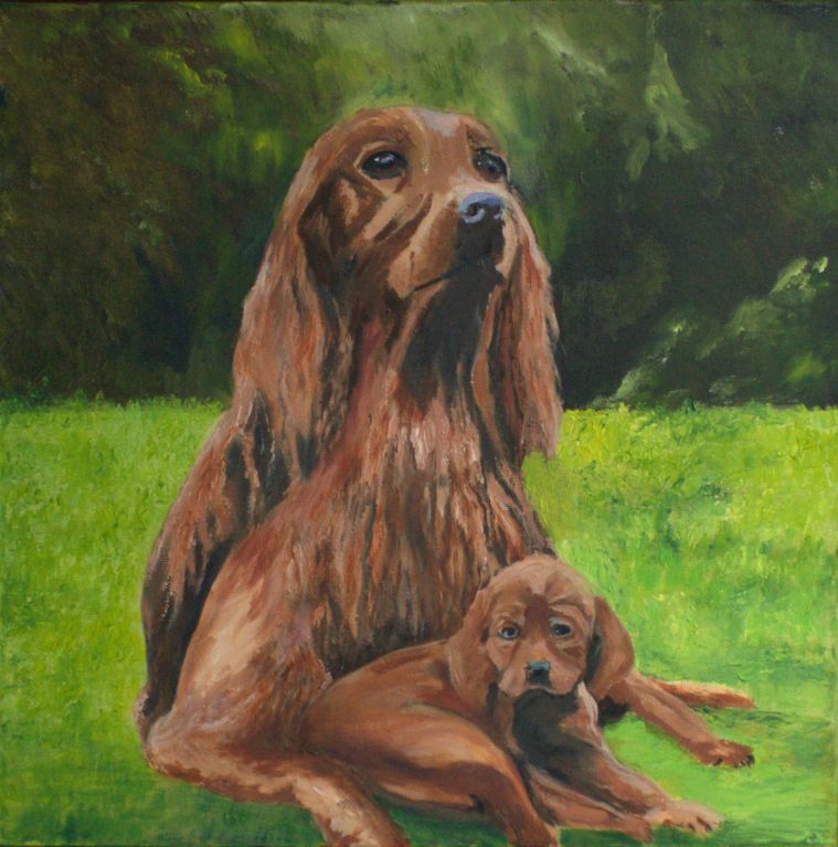 Red Setter, Mother and Pup